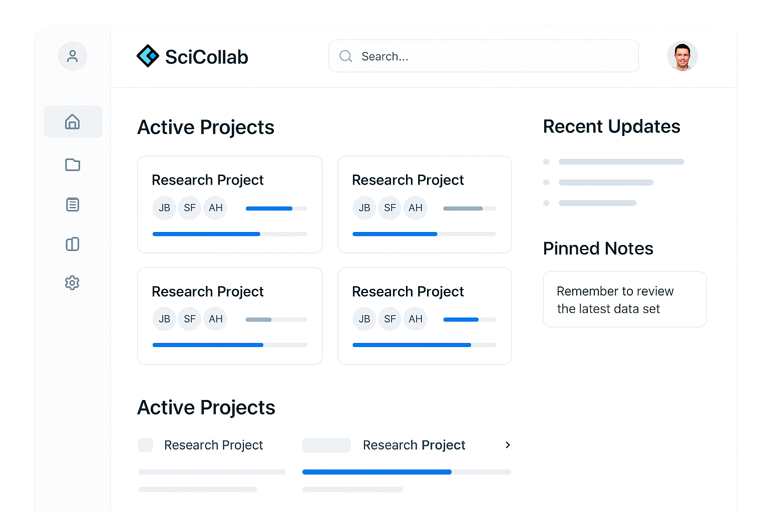SciCollab is an integrated platform designed to support researchers at every stage of the scientific process — from project planning and data management to collaboration, analysis, and publication.